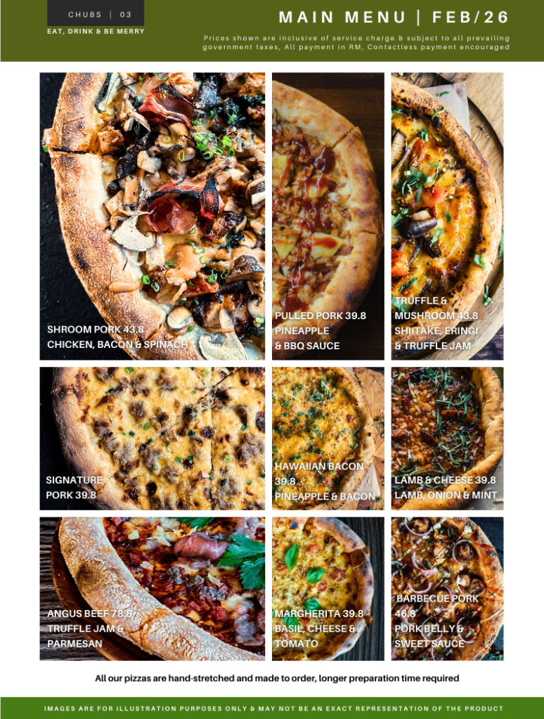 CHUBS GRILL 26/12/202019/02/2026 · Open from 12pm to 10pm Ribs🍖, burger🍔, pizza🍕, pasta🍝& ice cold beer🍻whatsapp 0162271839 TCG FOODS SDN BHD 1203779-V 201601032838